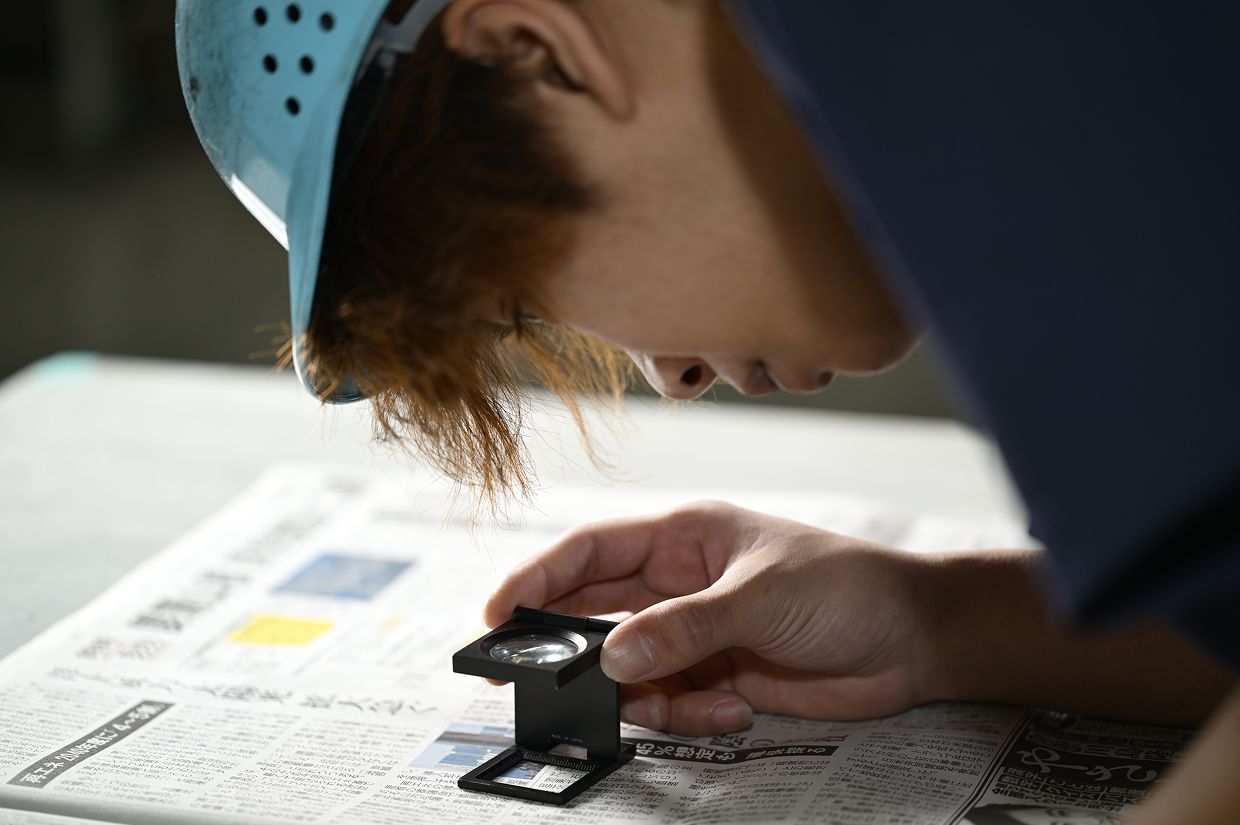 当工場では、高速オフセット輪転機で各種新聞を印刷しています。クリアな文字、鮮明なカラーで、読みやすい高品質な新聞を目指します。特に色の再現力の高さは大きな強みの一つ。経験を積んだ人の「目」と「繊細な技術」で調整を重ね、ベストな色を実現しています。